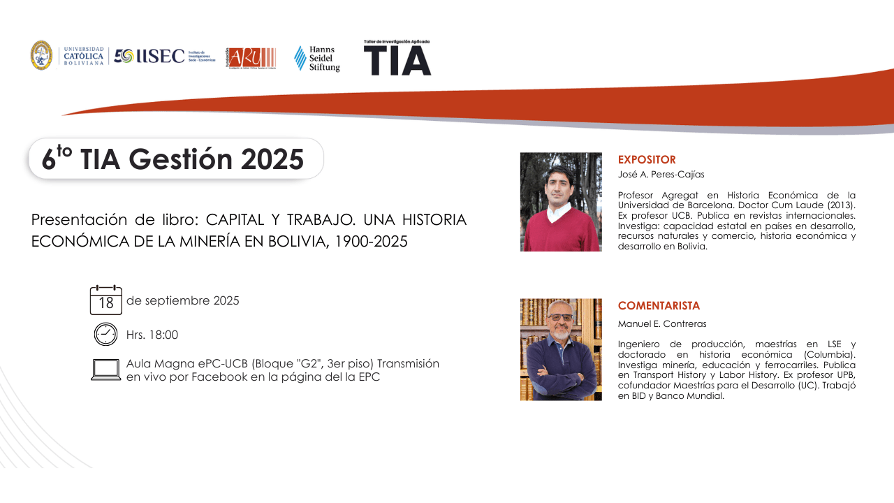 "Presentación de libro: CAPITAL Y TRABAJO. UNA HISTORIA ECONÓMICA DE LA MINERÍA EN BOLIVIA, 1900-2025."
